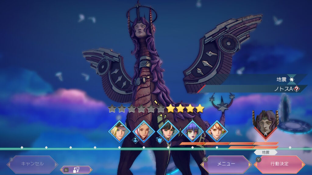 全体攻撃を多用してきます。地震(即死に注意)、星滅、聖歌です。