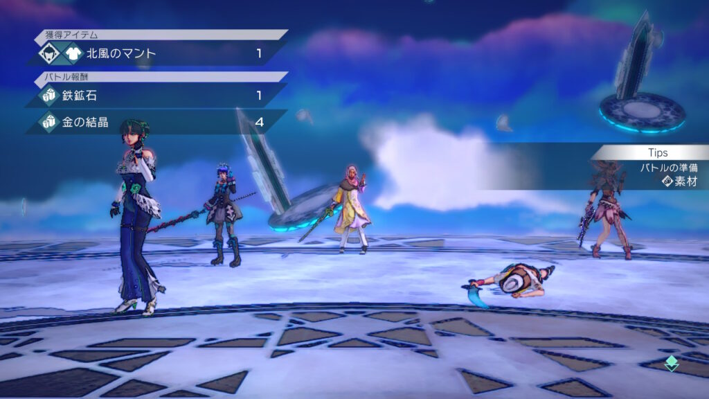 北風のマントは全体攻撃耐性+10%の効果のある副防具です。確定ドロップではなさそうです。